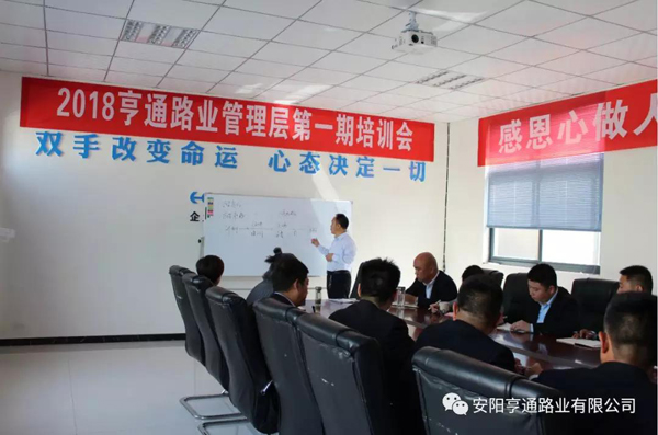 2018年4月18-20日,為加強(qiáng)公司管理隊(duì)伍建設(shè),增進(jìn)中層間的相互交流,培養(yǎng)鍛煉團(tuán)隊(duì)精神和協(xié)作意識,亨通路業(yè)全體中層從天南地北各個項(xiàng)目返回公司集中開展了為期三天的以“感恩心做人,責(zé)任心做事”為主題的專項(xiàng)培訓(xùn)活動。